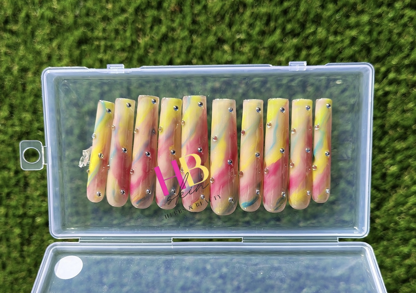 Rainbow! , (REUSABLE) Press On Nails Size M & S