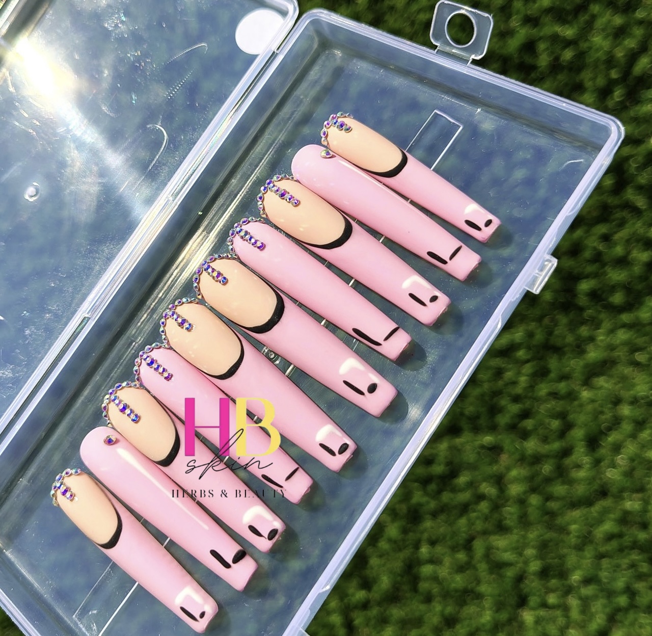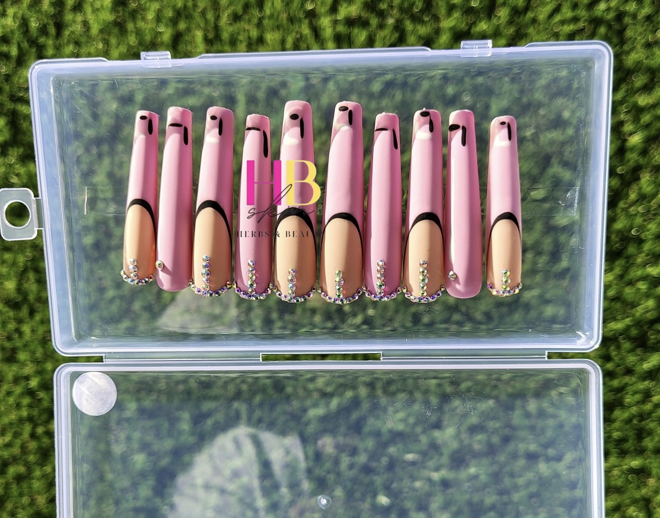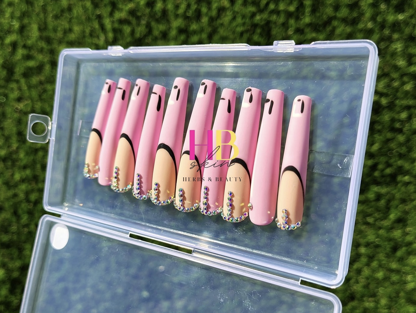 Pink Anime, ( REUSABLE) Long Press On Nails Size M & S
