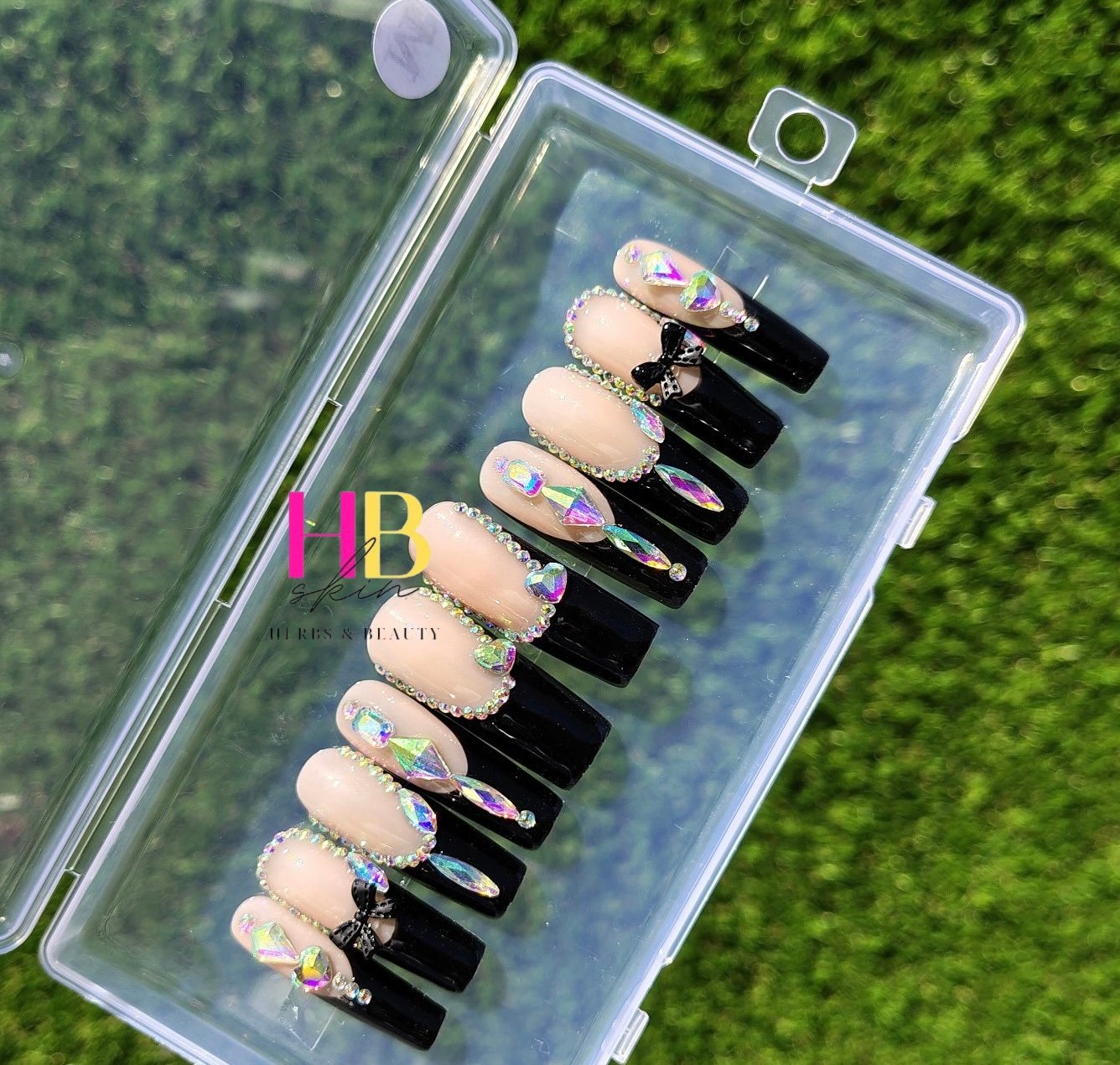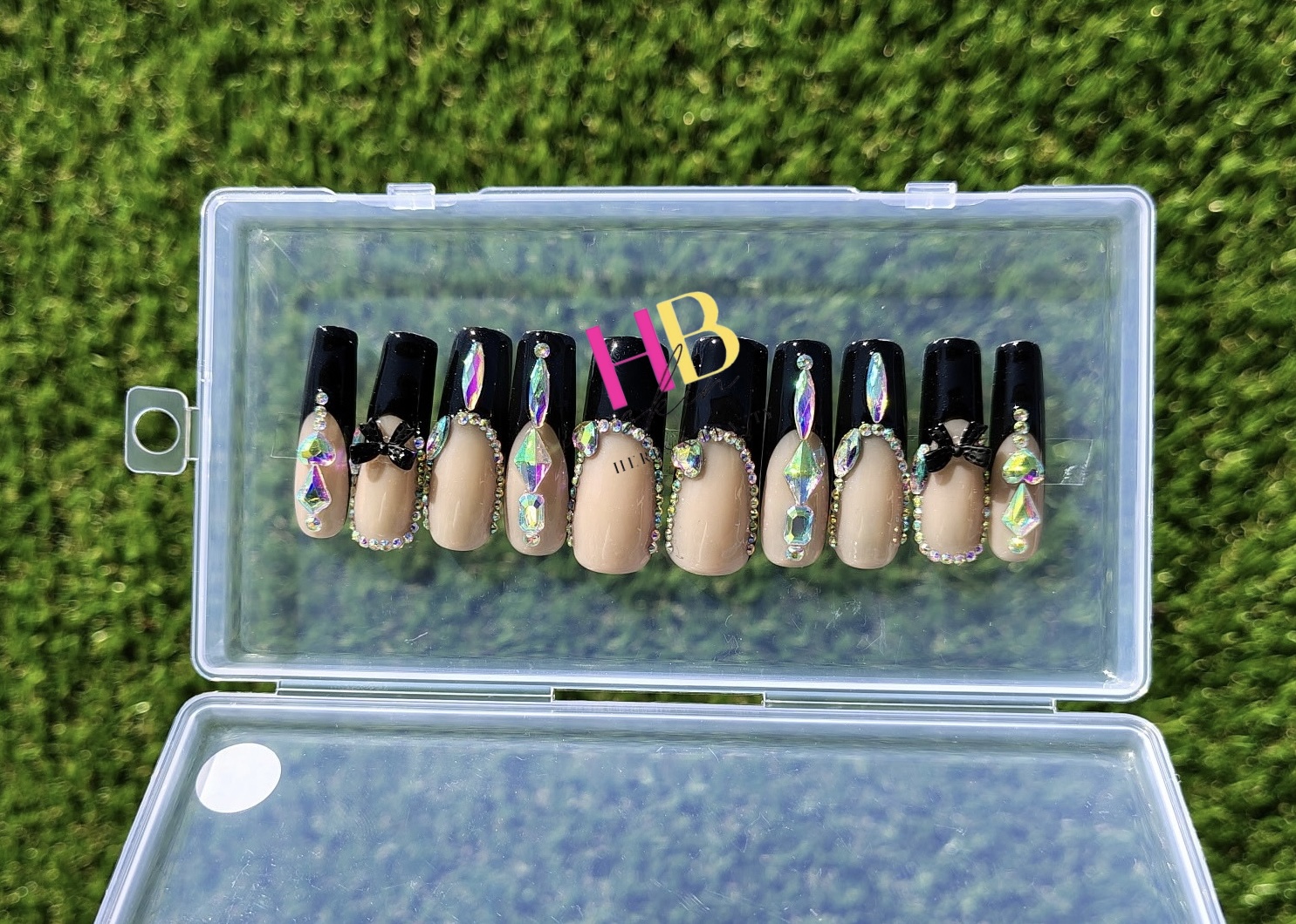 Ballerina Black ( REUSABLE) Press On Nails , Size M & S