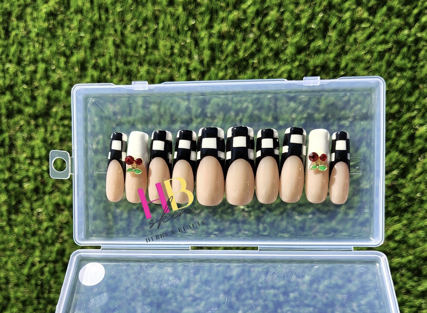Checker ! , Press On Nail ( REUSABLE) Size M & S